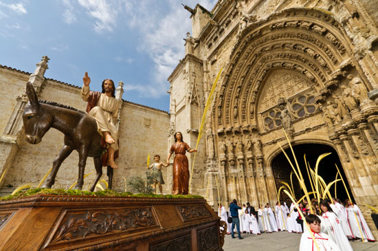 La COFRADÍA PENITENCIAL DEL SANTO SEPULCRO, ARCHICOFRADÍA DE LAS CINCO LLAGAS DE SAN FRANCISCO Y COFRADÍA DE SAN JUAN BAUTISTA, vulgo “el Santo Sepulcro”, tiene una tradición varias veces centenaria y su historia y evolución se confunde e identifica con los avatares que sufrió la ciudad de Palencia a lo largo de los siglos. Las primeras referencias históricas datan de 1407, año de fundación de la Cofradía de San Francisco. No se conservan más documentos que muestren su actividad hasta 1563, año en que fue refundada por el escribano Melchor de Cisneros. Esta Cofradía se hermanó, ya en el siglo XVI, con la Cofradía del Santísimo Sacramento y Cinco Llagas (resultante de la fusión de la Venerable Compañía del Santísimo Cuerpo de Cristo y la Archicofradía de las Cinco Llagas del Señor San Francisco), tal y como se cita en la bula concedida por Gregorio XIII en 1579. Ese mismo año se incorporaron los cofrades de la Quinta Angustia, lo que motivó que se redactara una nueva regla que será aprobada en 1585. La Cofradía de la Quinta Angustia fue una de las dos penitenciales existentes en la ciudad de Palencia en el siglo XVI y la única penitencial mariana hasta la creación en 1657 de la Cofradía de la Soledad. La Cofradía de la Quinta Angustia y San Francisco se fusionará, en 1585, con la Cofradía de la Caridad de los Pobres Presos de la Cárcel. Tras la redacción y aprobación de la nueva Regla de la Cofradía de la Quinta Angustia y San Francisco de 1585, se produce la realización de los pasos procesionales. Así en ese mismo año Bernardo Ortiz realiza el paso de la Entrada de Jesús en Jerusalén, policromado por Espinosa. En el primer tercio del siglo XVII se encargaron varias imágenes necesarias para la celebración de la ceremonia del Desenclavo. La decadencia de todas las penitenciales de la ciudad en los años finales del siglo XVIII motivó que la ceremonia del Desenclavo o descendimiento dejara de realizarse, no recuperándose hasta el siglo XXI. La sede de la Cofradía estuvo ubicada en un edificio construido a finales del siglo XVI en los alrededores del Monasterio de San Francisco, propiedad de ésta junto con un corral de comedias ubicado en los solares que la hermandad compró al convento de Santa Clara, y que utilizaba para realizar funciones teatrales de manera regular para generar fondos con los que ayudar a socorrer las necesidades de los presos e, incluso, a redimir a alguno. La Cofradía se trasladó, en 1917, a la Iglesia Parroquial de Nuestra Señora de la Calle y posteriormente estuvo situada en la ermita de San Juan Bautista, hasta que fue derribada en 1967, y en cuyos solares se levantó el bloque de viviendas que acoge en sus bajos la sede actual, anexa a la cual se encuentra la Capilla de la Cofradía, donde se guardan las imágenes y pasos de la Cofradía. Es precisamente a raíz de la marcha de los Padres Franciscanos de Palencia cuando, por la precaria situación de locales y debido a que la Cofradía de San Juan Bautista de Palencia, en otro tiempo de gran auge en nuestra ciudad, va reduciendo el número de cofrades, y tiene lugar la fusión de la Archicofradía de las Cinco Llagas y la de San Juan Bautista, pasando a ocupar la Capilla y Casa de esta Cofradía. El hábito de la Cofradía fue negro con las cinco llagas de San Francisco sobre el pecho y un cordel ceñido a la cintura. En 1929 se empieza a utilizar el actual, compuesto de túnica y capillo blancos, con la cruz del Santo Sepulcro, en rojo, bordado en el pecho de la primera y en la parte baja del segundo. A partir de 1975 se añadió una capa, también blanca, con la misma cruz bordada en el hombro.