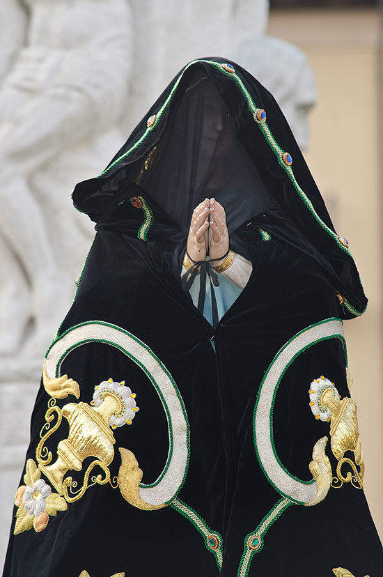 Black tunic with green buttons, black cord, black cap, green cape, black gloves (except processions without cap which are white gloves.